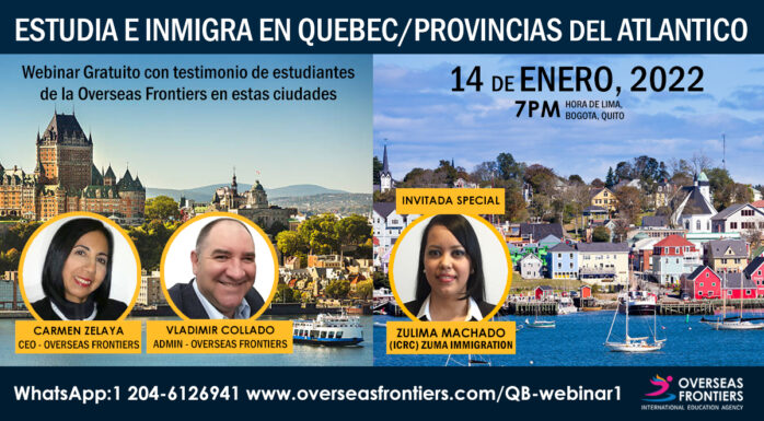 Cómo estudiar e inmigrar a Quebec o las Provincias del Atlántico – Webinar el 14 de enero con Overseas Frontiers y Zulima