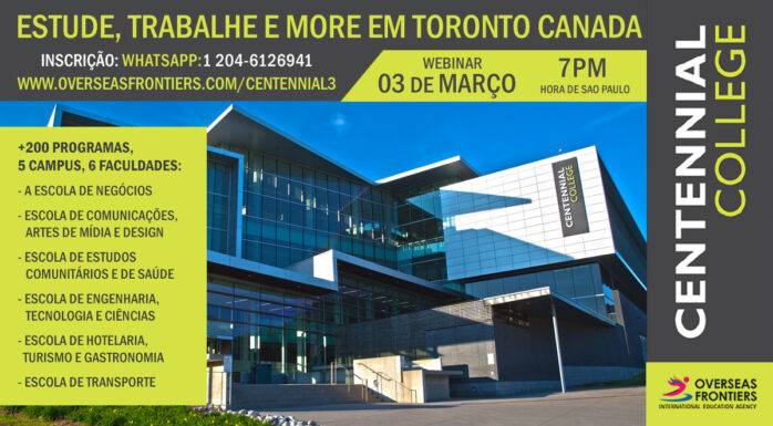 O Centennial College e Overseas Frontiers têm o prazer de convidá-lo para o webinar em portuges que acontecerá no dia 03 de Março à s 19h (horÃ