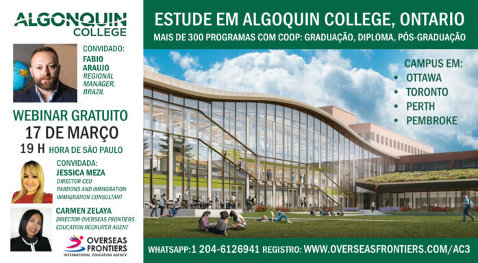 Algonquin College e Overseas Frontiers convidam você para o webinar no dia 17 de março às 19h (horário de Sao Paulo). A Algonquin possui campi em
