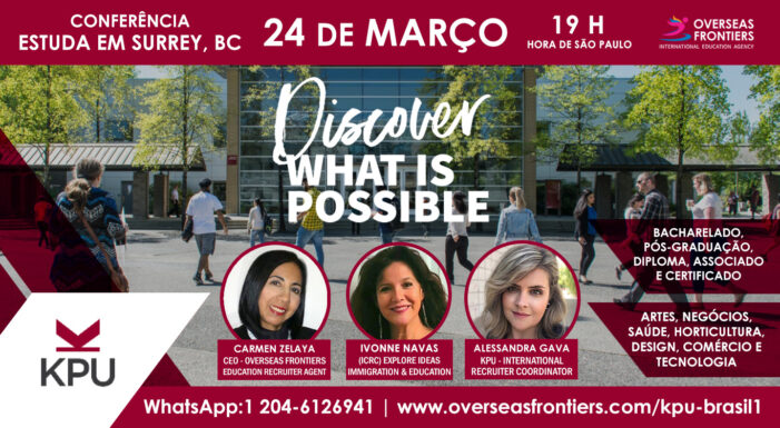 KPU e Overseas Frontiers convidam você para o webinar no dia 24 de março às 19h (horário de São Paulo). KWANTLEN POLYTECHNIC UNIVERSITY – KPU