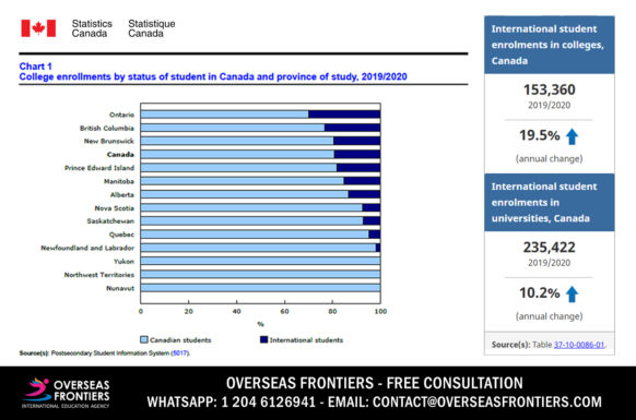 Statistics Canada shows increase of international students over the last five years (2017-2021)