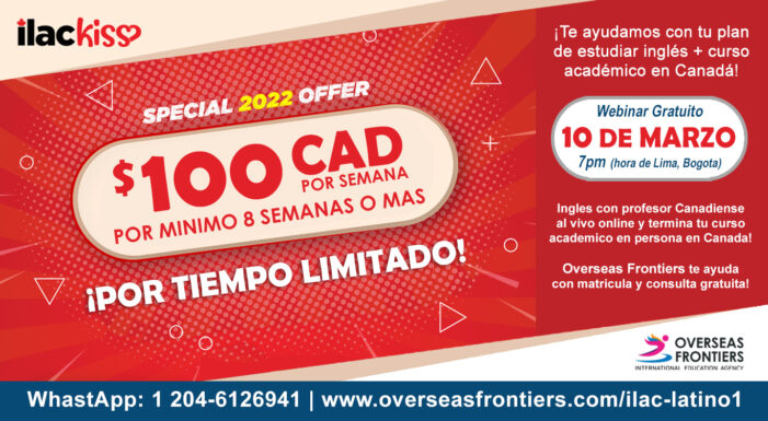 ILAC y Overseas Frontiers te invitan al webinar el 10 de marzo a las 7pm (hora de Lima, Bogotá y Quito). ILAC es la escuela de inglés más famosa