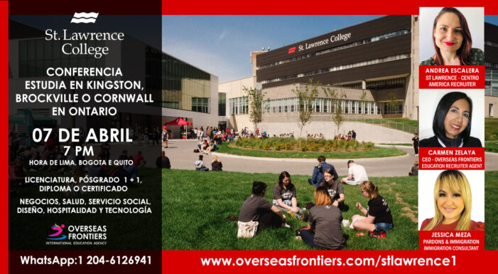 St. Lawrence College y Overseas Frontiers lo invitan al webinar sobre "Estudiar en St. Lawrence College, Ontario, Canadá" el 07 de Abril a las 7pm (