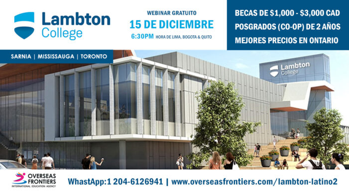 Lambton College y Overseas Frontiers lo invitan al webinar el 15 de diciembre a las 6:30 pm (hora de Lima, Bogotá y Quito). Lambton ofrece programas