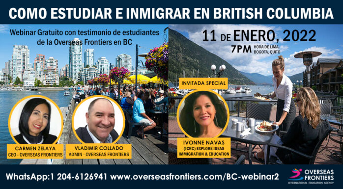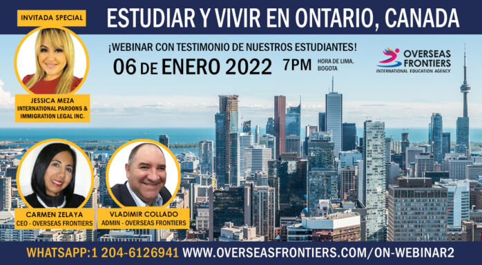 Overseas Frontiers y Jessica Meza (CICR) te invitamos al webinar del 06 de enero de 2022 sobre “Como estudiar e inmigrar en Ontario”. Nuestra inv