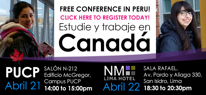 Our first conferences in Lima, Peru at the Catholic University PUCP, Senati (technical school), Hotel NM in San Isidro and Coffee meeting with group of friends. Thank you The Chamber of Commerce of Canada / Peru for your support and logistic. This year 2016 our company started to offer the best schools in 3 main cities in Canada. Our special star was Manitoba we show this new destination with a great potential and benefits for our students.