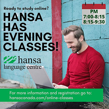 Hansa Language Centre ahora ofrece cursos en línea. Las clases se llevan a cabo con nuestros profesores en vivo, al igual que a lo que los estudiantes están acostumbrados en un salón de clases.
