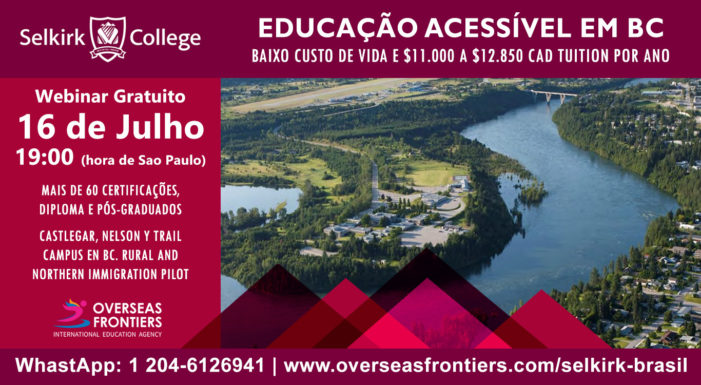 O Selkirk College e a Overseas Frontiers convidam você para a conferência em 16 de julho às 19:00 (horário de Sao Paulo).