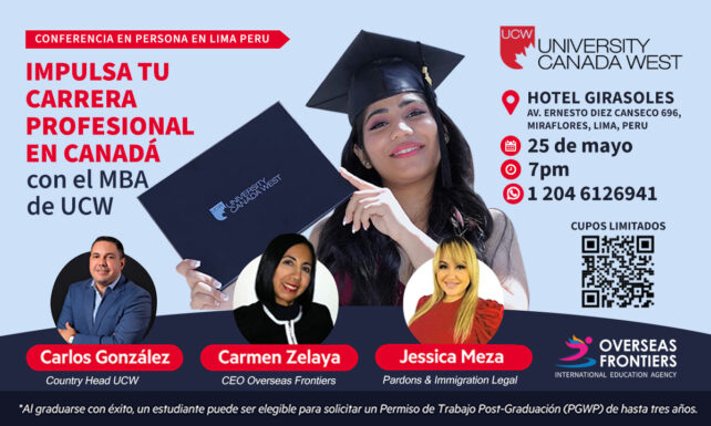 UCW University Canada West y Overseas Frontiers lo invitan a asistir a la conferencia en persona el 25 de mayo en el Hotel Girasoles en Av. Diez Cans