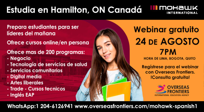 webinar gratuito sobre Mohawk College el dia 24 de agosto a las 7pm.
