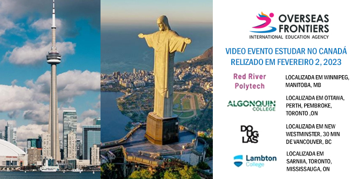 Video da conferência híbrido (presencial e virtual) sobre Estudar no Canadá. Convidados: Red River College, Algonquin College, Douglas College e Lambton College. A Overseas Frontiers oferece consultoria gratuita e envia opções de programas de acordo com seu perfil profissional e te cadastra na instituição e acompanha seu processo até que você inicie com sucesso seu programa no Canadá. Contata a Overseas Frontiers