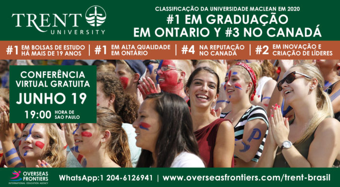 Convite para jovens com ensino médio ou no primeiro ano da faculdade e para os pais, convidamos você a participar da conferência virtual gratuita no dia 19 de junho às 19:00 (horário de Sao Paulo). A Trent University é a TOP no Canadá, de acordo com o ranking da Universidade MacLean em 2020, estes são os destaques: