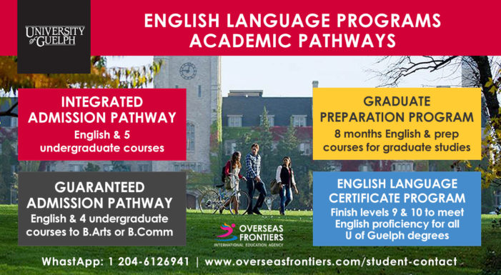 If the student doesn’t meet the minimum English requirement to be enroll at the Guelph University, Overseas Frontiers can help you to register in one of the English Language Program – Pathways to University of Guelph to get into the Guelph University. Please fill out our free consultation form here!