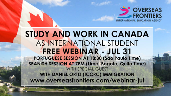 Carmen Zelaya, director of Overseas Frontiers would like to invite you to participate in our FREE webinar about “Study & Work in Canada as International Student” our special guest Daniel Ortiz is ICCRC immigration specialist.